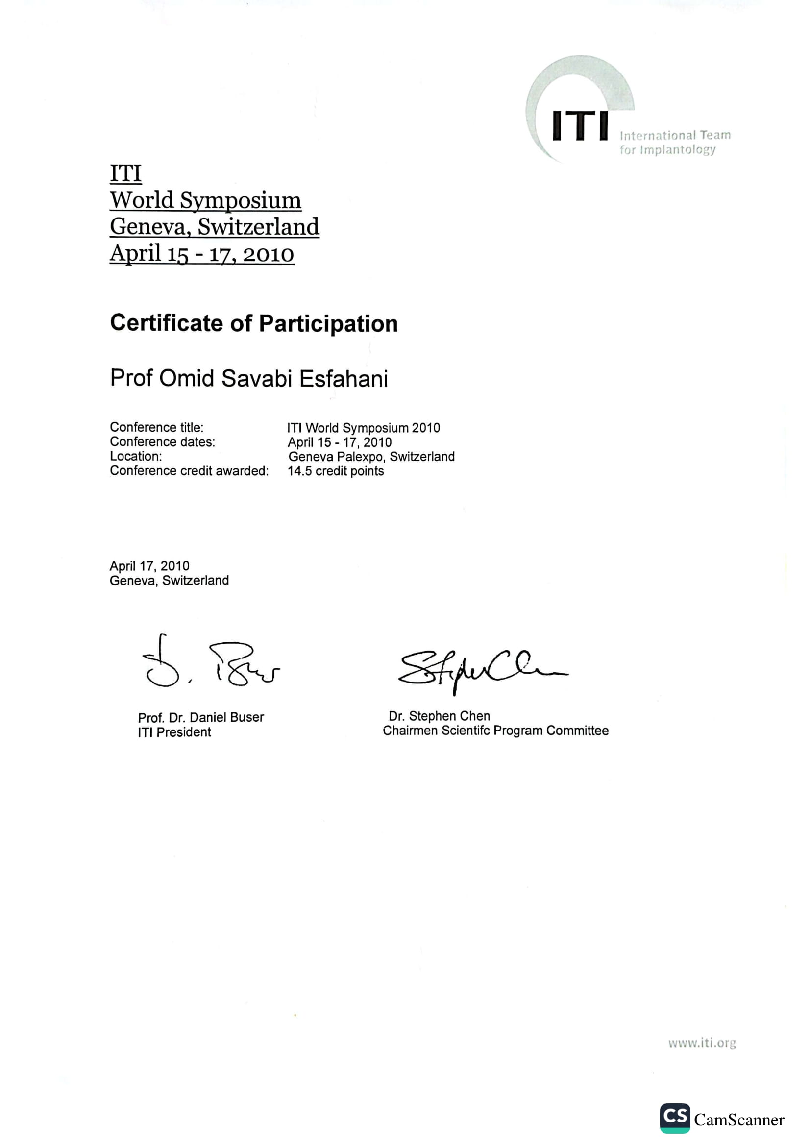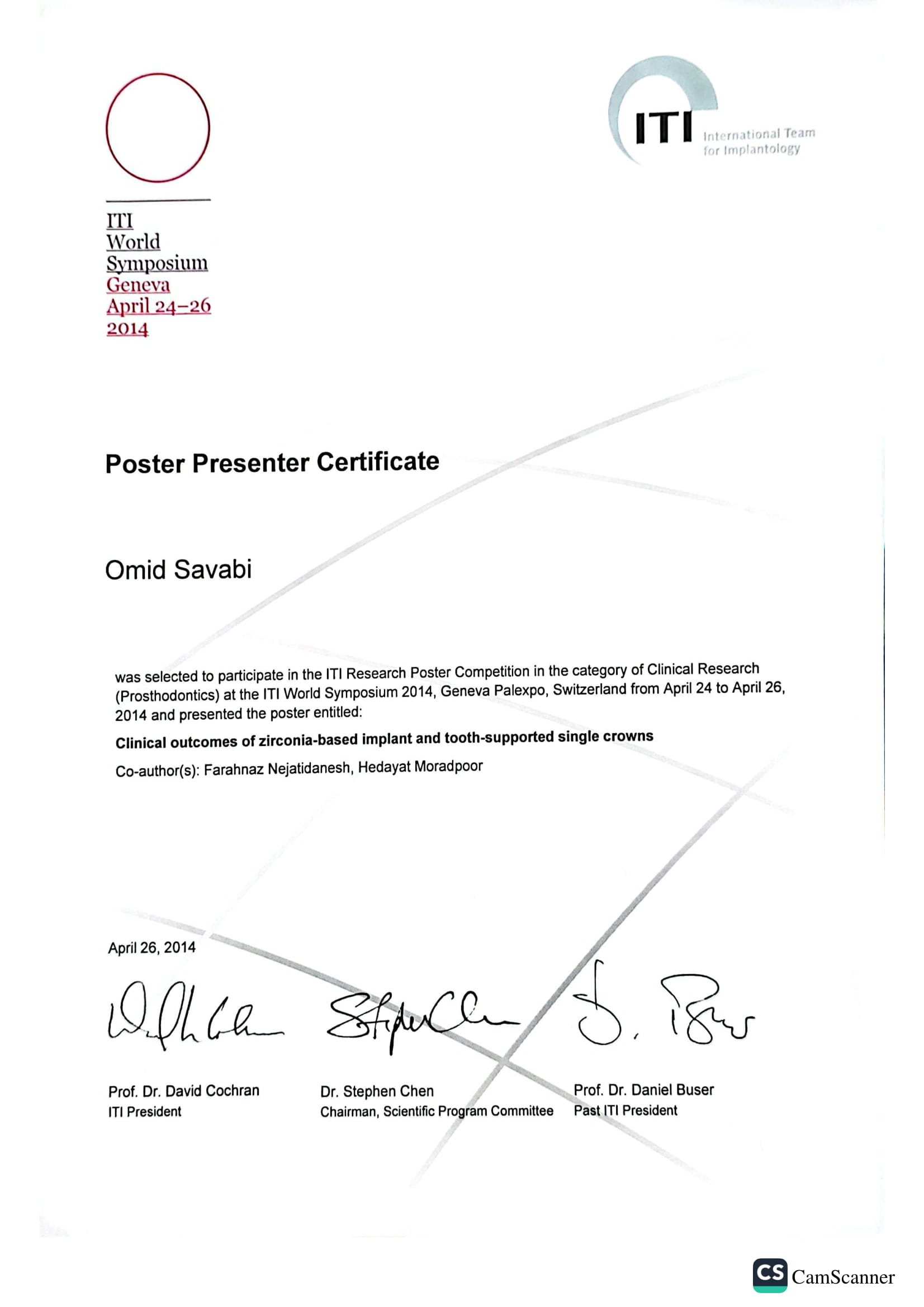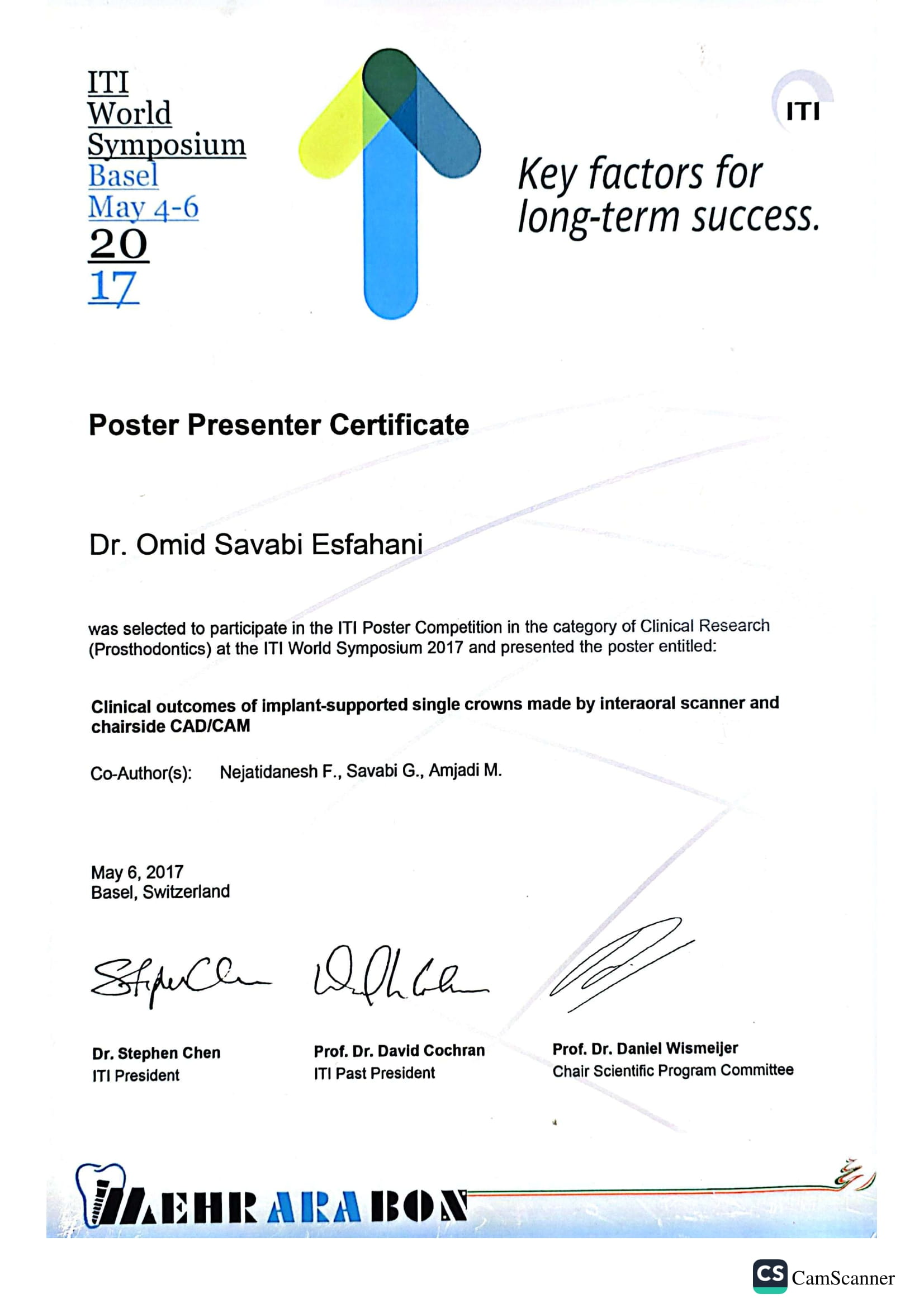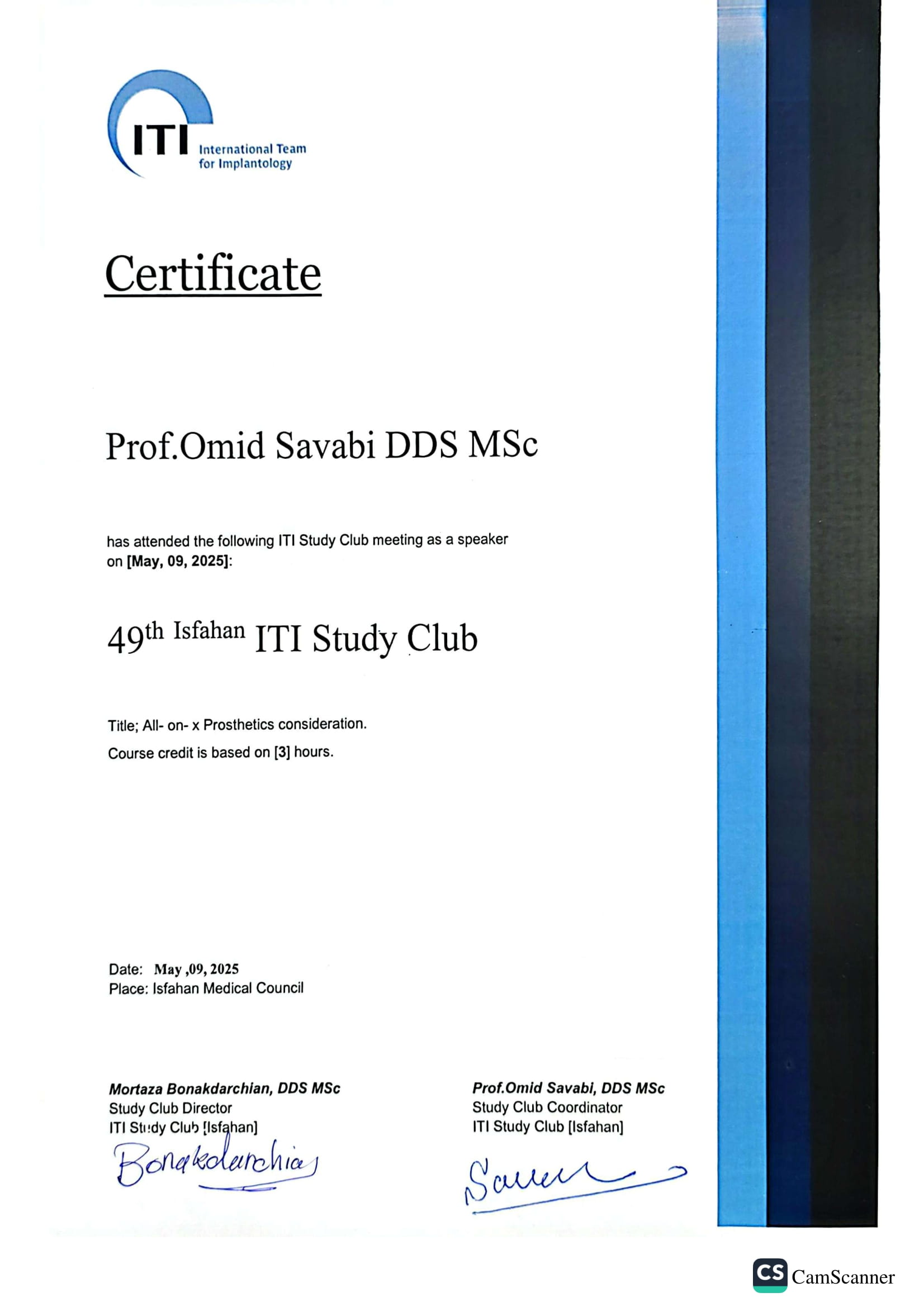 He has published more than 120 scientific articles in prestigious international journals and contributed in translating and writing of 4 internationals books: “Essential of Complete Denture Prosthodontics”, “Clinical problem solving in prosthodontics.”, “Dental Implantation and Technology” and “Hand book of oral and maxillofacial surgery and implant;ogy”. He is an international lecturer in the field of implant dentistry, digital dentistry, dental materials, and all- ceramic restorations. He is an expert in digital prosthodontics with more than 15 years of experience with zirconia and CEREC restorations. Professor Savabi is ITI fellow and ITI lecturer.